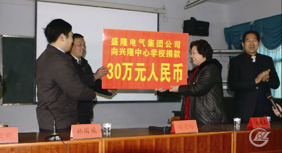 2011年1月30日,盛隆電氣集團有限公司在湖北棗陽興隆鎮舉行捐贈活動儀式,向興隆中心學校和興隆福利院捐款共計40萬元。興隆鎮有關方面負責人出席了捐款儀式。2011-01-31