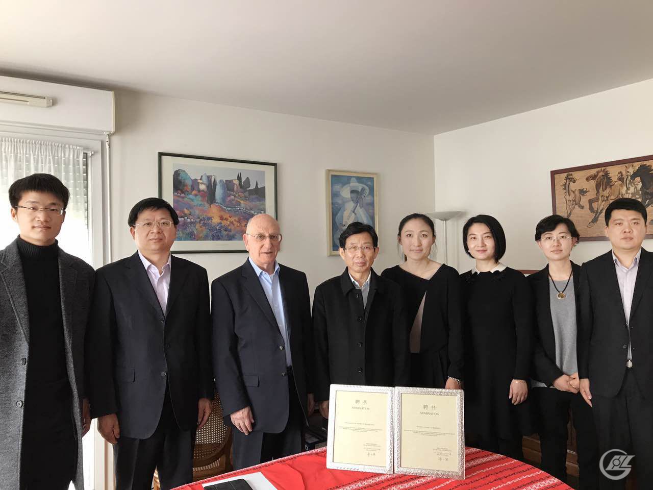 左起四:盛隆電氣集團董事長謝元德  左起三:盛隆大學巴黎盛創院名譽院長皮埃爾·克勞斯 右起四:盛隆大學巴黎盛創院院長張穎