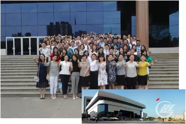 盛隆電氣集團參加新商品發布會的人員于活動開始前在江澤民題字的思源學生活動中心合影留念