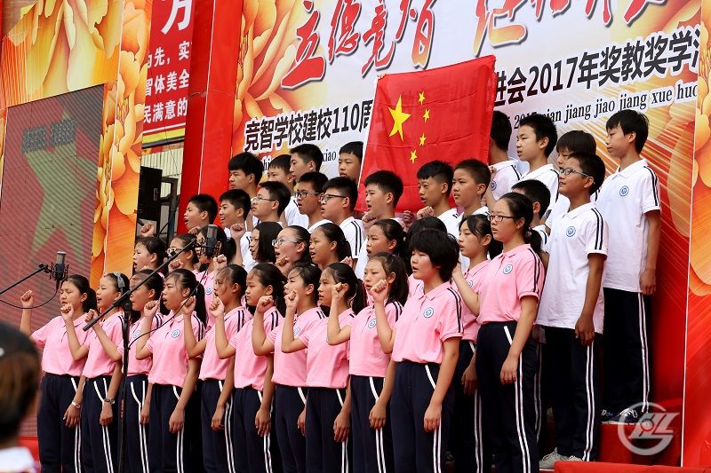 第三段。“鶯河育英才,紅土赤子魄。偉大復興夢,責在你和我。啊,競智!競智!桃李芬芳四海,棟梁奉獻祖國!”這是對母校在實現中國夢的征程中,更好地成長,做出更大貢獻的期許,也是必將創造和實現的新的輝煌未來。