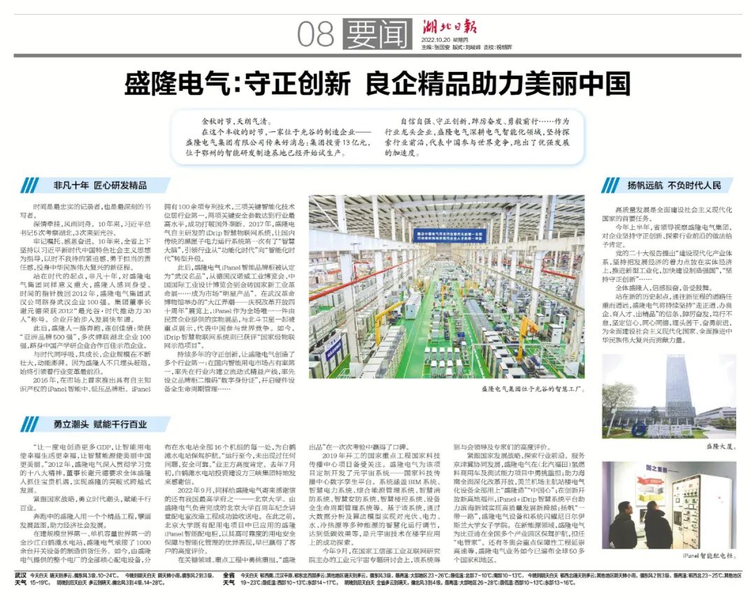 【轉(zhuǎn)自湖北日?qǐng)?bào)】盛隆電氣:守正創(chuàng)新 良企精品助力美麗中國(guó)