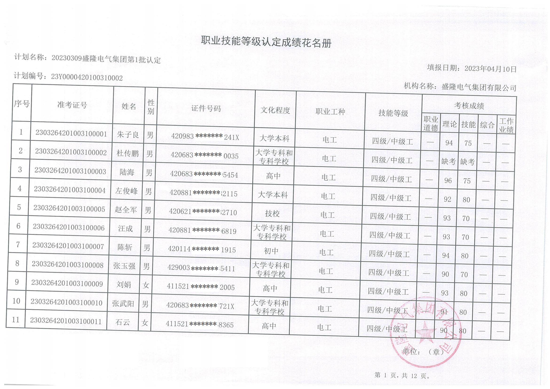 關(guān)于盛隆電氣集團(tuán)2023年第三批職業(yè)技能等級認(rèn)定的公告