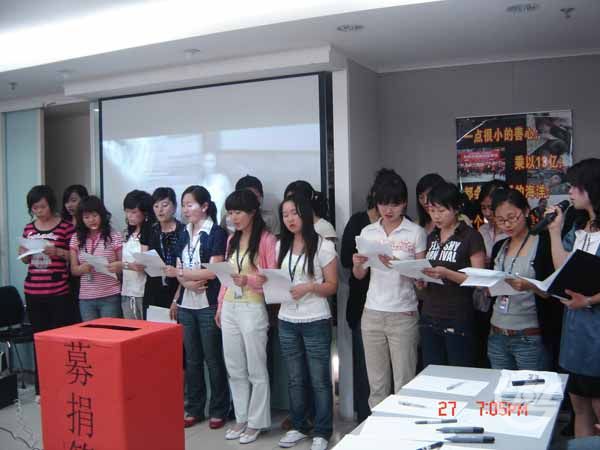 2008年6月3日晚7點,公司在北京上地大會議室舉行了盛隆電氣(北京)募捐晚會。出席此次晚會的領(lǐng)導(dǎo)有公司董事長謝總,各營銷系統(tǒng)領(lǐng)導(dǎo)及營銷人員、管理和服務(wù)系統(tǒng)代表、生產(chǎn)系統(tǒng)代表共200余人。晚會在默哀完畢后,主持人請本次晚會總策劃人謝總講話。謝總上臺后首先為災(zāi)區(qū)捐款,接著謝總講道:“我在6月1日看到發(fā)布的消息,在...2008-06-14 -
